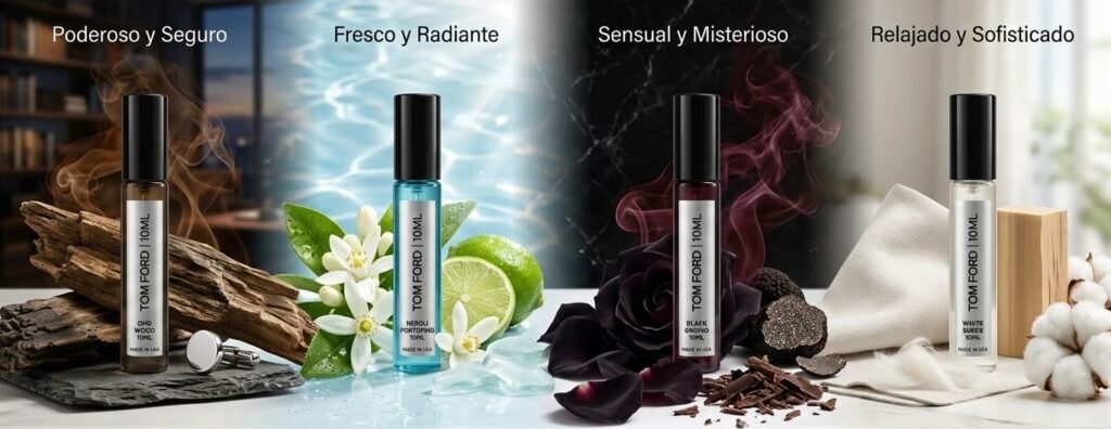 En Tom Ford, la fragancia no es un accesorio, es una armadura emocional. Dependiendo de cómo te despiertes o del evento que tengas por delante, tu olfato buscará notas que refuercen tu estado de ánimo o que transformen tu energía.